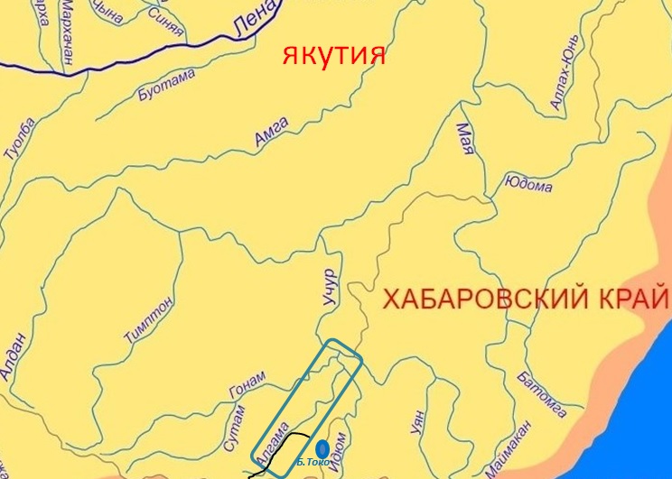 Долина реки — 426 км, площадь бассейна — 21 500 км². Берёт начало с северных склонов Станового хребта. Течёт в северо-восточном направлении по Алданскому нагорью, впадает в Гонам в 3,5 км от места его впадения в Учур. По всей длине имеет черты горной реки, в нижнем течении достигает ширины 100—150 м. Река принимает 47 притоков длиной более 10 км, основной — река Идюм, впадает справа. В бассейне реки около 1500 озёр, крупнейшим из них является озеро Большое Токо.