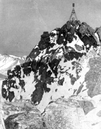 В описании геодезиста Е. Васюткина, побывавшего у этой части хребта на год раньше нас, сказано: «…пик не является господствующей вершиной, но он очень скалистый и труднодоступный. Его окружают глубокие цирки, кручи и пропасти. Нам удалось подняться на пик только с западной стороны. Этот путь идет по единственной лощине, очень крутой, и требует при подъеме большой осторожности. В других местах не подняться. Лес для постройки пирамиды на вершине Алгычана можно вынести только в марте, когда лощина забита снегом…